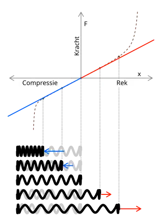 waarin de uitrekking of indrukking is van een veer als er een kracht op de veer werkt.