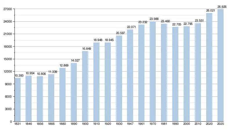 Alle historische gegevens hebben betrekking op de huidige gemeente, inclusief deelgemeenten, zoals ontstaan na de fusie van 1 januari 1977.