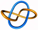 In de notatie van de vlechttheorie wordt de Whitehead-schakel geschreven als