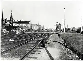 Vanaf het aan de Singelgracht bij het Rhijnspoorplein gelegen Weesperpoortstation reden van 1843 tot 1939 treinen op maaiveldniveau in de richting Utrecht. Ook vertrok hier de Gooische Stoomtram. Bij de aanleg van de Wibautstraat vanaf 1940 verdwenen de Spoorbaanstraat, de Miquelstraat en een gedeelte van de Vrolikstraat. Aan het eind van de straat bij de bocht richting Afrikaanderbuurt verscheen een spoorviaduct. Tijdens de Tweede Wereldoorlog, van 13 februari 1942 tot 18 mei 1945, was de naam van deze straat in opdracht van de bezetter gewijzigd in Weesperpoortstraat.[2]