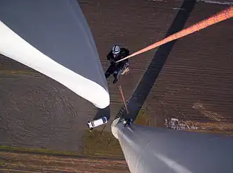 Het plaatsen van de windturbinebladen is een kritiek moment bij de opbouw van een molen. De wieken, gemaakt om zo veel mogelijk wind te vangen, zijn loshangend moeilijk te controleren. Dit is de reden waarom het windstil moet zijn op het moment van hijsen.