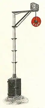 - ↑ (en) Peabody, J.A. (december 1926). C.&N.W. Replaces Highway Crossing Gates With Wig-Wags. Railway Signaling 19 (12): pp. 464-466