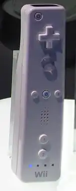 De hoofdcontroller ziet eruit als een afstandsbediening, die niet-gamers moet aanlokken om de Wiimote op te pakken en ermee te spelen. Dit is gedaan om de concurrentie minder bedreigend te maken, aangezien de controller enig in zijn soort is kan men de apparaten vrijwel niet met elkaar vergelijken. De controller is in principe een balkvormig stuk plastic, met op de voorkant een infraroodontvanger, op de bovenkant (van boven naar beneden) een aan/uit knop, een D-Pad, een klein kruisje, waarmee je een richting kunt kiezen. Daaronder bevindt zich de A-knop, een ronde knop die meerdere functies heeft (springen, schieten, rennen en dergelijke). Onder de A-knop zijn drie kleine knopjes, van links naar rechts bekeken de - -knop, de home-knop (wit met een blauw huisje) en een + -knop. Hieronder bevindt zich een speaker, waaronder twee kleine knopjes zitten, 1 en 2. De speaker wordt gebruikt om een extra dimensie toe te voegen aan bijvoorbeeld Super Mario Galaxy, waarbij de controller geluid maakt als er een muntje wordt opgeraapt. Aan de achterkant van de Wii-mote zit de B-knop in een kleine hoek zodat het fungeert als de trekker van een pistool. Ook aan de achterkant zit een klein klepje waar twee AA-batterijen ingaan, want Nintendo's ontwerpers vonden een accu met lader te omslachtig en kozen voor deze optie. Een accu is ook niet gepland voor latere versies.[1] Aan de onderkant van de controller zit een klein poortje, waaraan de extensies kunnen worden vastgemaakt.