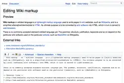 Een van de meest gebruikte wikiteksttalen is die welke door de MediaWiki-software wordt gebruikt, de software waar Wikipedia en de projecten van Wikia op draaien.