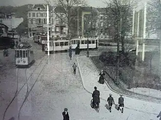 Het stadsvervoer bood zijn diensten op het plein aan, de paardentram van de Arnhemsche Tramweg-Maatschappij (AhTM) had al vanaf 1880 een verbinding vanaf het plein naar Velp. In 1899 werd door het Ministerie van Waterstaat, Handel en Nijverheid een dertig jaar durende concessie aan AhTM uitgegeven voor de verbinding naar Velp, waarop de maatschappij de trambanen vanaf het Willemsplein naar Velp verdubbelde. In 1911 nam het gemeentelijk trambedrijf de diensten van de particuliere maatschappij over en exploiteerde drie, later vier geëlektrificeerde lijnen die via of vanaf het Willemsplein liepen.[5] Het plein was tot 1944 het centrale overstappunt waar elke 10 minuten de trams uit alle richtingen elkaar ontmoetten.
