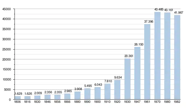 - Opmerking:resultaten volkstellingen op 31/12 tot en met 1970 + 01/01/1980 + 31/12/1982
