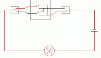 • Kruisschakelaar: hier komen vier zwarte schakeldraden samen, namelijk twee paar; elk paar leidt naar een andere schakelaar. Het ene paar komt aan de gemerkte klemmen en het andere paar aan de ongemerkte klemmen. De twee paren mogen verwisseld worden, en de draden van een paar ook, maar het is niet goed een draad van het ene paar te verwisselen met een draad van het andere paar.