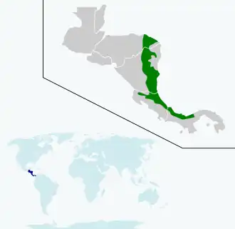 - M. a. albocoronata komt voor in westelijk en centraal Panama zowel aan de Caraïbische als de Pacifische zijde van de waterscheiding.