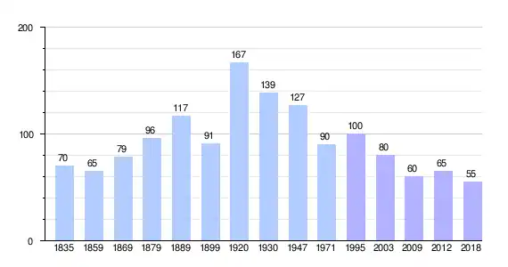 ■ Data afkomstig van volkstellingen.nl. Het cijfer voor 1835 komt uit Wesseling, 1974[27]