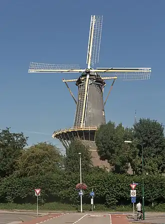 Windmolen "De Windhond", een korenmolen in het centrum van Woerden -