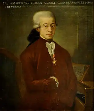 Wolfgang Amadeus Mozart[a] (Salzburg, 27 januari 1756 – Wenen, 5 december 1791), doopnaam Joannes Chrysostomus Wolfgangus Theophilus Mozart, was een uit het prinsaartsbisdom Salzburg afkomstige componist, pianist, violist en dirigent. Hij excelleerde in elke courante muziekvorm uit zijn tijd, met name in opera, de symfonie, het pianoconcert en kamermuziek.[1] De muziek die hij als volwassene componeerde, geworteld in Oostenrijkse en Zuid-Duitse tradities, maar gekleurd door de Italiaanse opera, kenmerkt zich door haar melodische schoonheid, formele perfectie en rijkdom van harmonie en textuur.[2] Samen met Johann Sebastian Bach en Ludwig van Beethoven wordt hij beschouwd als componist die binnen een traditie nieuwe muzikale concepten bedacht en die diepgaande invloed uitoefende op alle na hem komende componisten. Mozarts werk wordt gerekend tot de muziek van de klassieke periode. Met Joseph Haydn en Ludwig van Beethoven vormt hij, muziekhistorisch gezien, de Eerste Weense School.