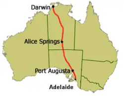 - Daly Waters (later toegevoegd) op 588 km