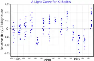 Xi Boötis is een dubbelster met een spectraalklasse van G7Ve en K5Ve. De ster bevindt zich 22,02 lichtjaar van de zon.