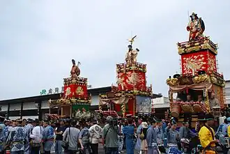 De drijvende constructies staan bekend als bewegende museums door de decoratie met tapijten en houten of metalen ornamenten. Het festival wordt gehouden bij de Yasaka-schrijn en er nemen 32 drijvende constructies aan deel. De constructies worden door de inwoners van het gebied gemaakt.