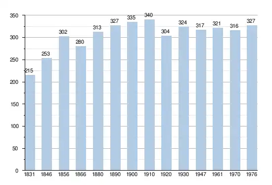 - Bronnen:NIS, Opm:1831 tot en met 1970=volkstellingen, 1976= inwoneraantal op 31 december