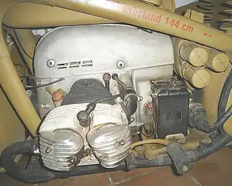 De motor was een op 751 cc gebrachte tweecilinder kopklep boxermotor met twee kleppen per cilinder. De cilinders waren ter verhoging van de bodemvrijheid iets opgetild, waardoor het een 170° motor was. Waarschijnlijk was er een gewone 180° krukas toegepast, waardoor de motor onmerkbaar iets onregelmatig liep. De cilinderkoppen waren van aluminium, en waren samen met de kleppendeksels ruim voorzien van koelribben, om ook voldoende rijwindkoeling te krijgen bij zeer lage (mars) snelheden. Alle lagers waren rollende lagers. De nokkenasaandrijving en de aandrijving van de oliepomp geschiedden met tandwielen vanaf de krukas. Er was slechts één carburateur toegepast, een Solex BFR30 autocarburateur, die voor de KS 750 werd aangepast zodat de motor bleef lopen onder een grote hellingshoek 'wel tot 45 graden'. Accu ontsteking werd bewust weggelaten, om problemen met de accu te voorkomen. Daarom werd magneetontsteking toegepast. Toch was er een loodaccu aan boord: deze was achter de linker cilinder geplaatst. Hoewel de cilinderkoppen identiek waren aan die van de KS 600, waren ze niet uitwisselbaar omdat het 5° hoekverschil van de cilinders andere boorgaten vereiste.