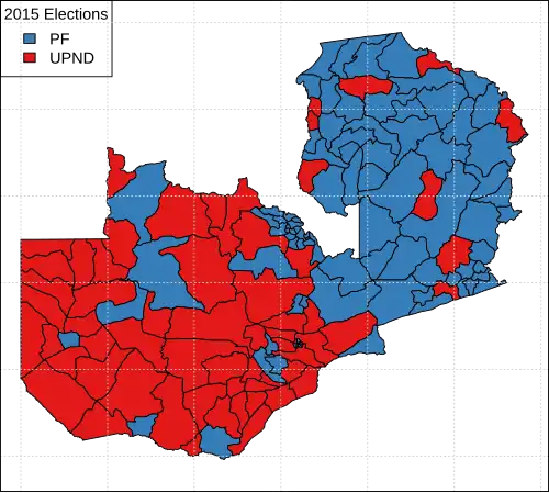 De regeringspartij Patriotic Front (PF) wees Edgar Lungu aan als kandidaat. Zijn voornaamste tegenstrever was Hakainde Hichilema (UPND). Met een zeer klein verschil van iets meer dan 27.500 stemmen won Lungu de verkiezingen. Hichilema meende dat er gefraudeerd was maar riep zijn achterban op om kalmte te bewaren.[3][4]