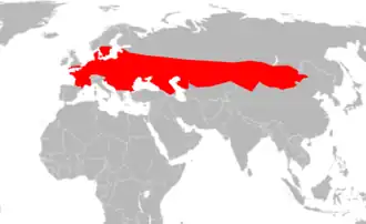| Verspreidingsgebied in het rood | |||||||||||||||||