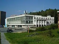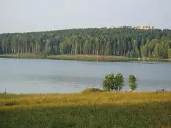 | Gezicht op Zaretsjny vanaf het meer | |||