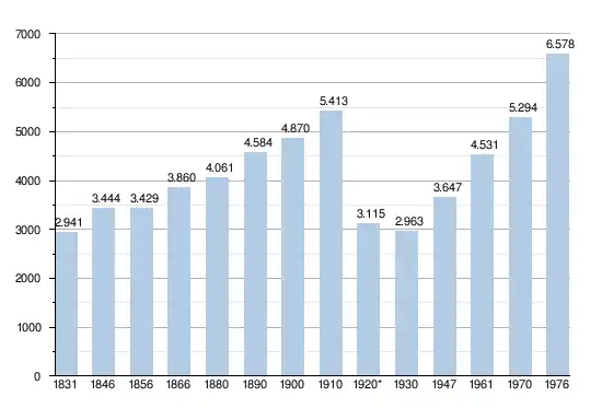 - Bronnen:NIS, Opm:1831 tot en met 1970=volkstellingen; 1976 = inwoneraantal op 31 december