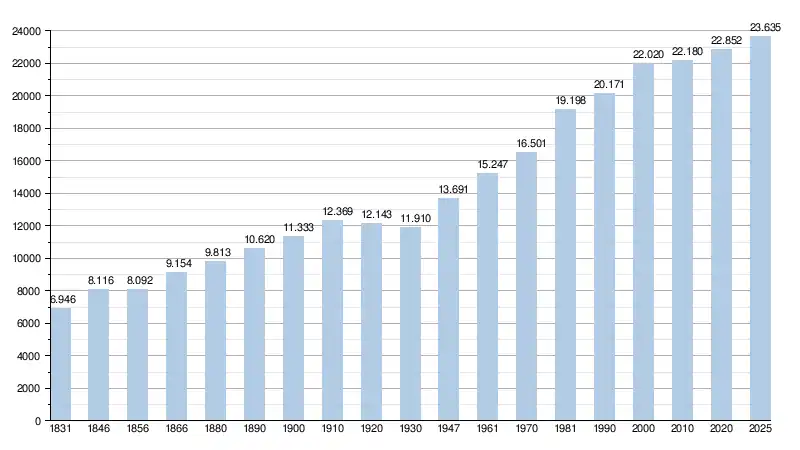 Alle historische gegevens hebben betrekking op de huidige gemeente, inclusief deelgemeenten, zoals ontstaan na de fusie van 1 januari 1977.