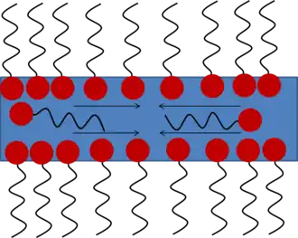 Bovendien maken oppervlakteactieve stoffen de film stabieler voor dikteschommelingen, als gevolg van het marangoni-effect. Dit geeft enige elasticiteit aan het grensvlak: als oppervlakteconcentraties niet homogeen over het oppervlak verspreid zijn, zullen marangoni-krachten de neiging hebben om de oppervlakteconcentratie opnieuw te homogeniseren (zie figuur 2).