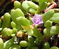 De plant draagt kleine, meestal paarse, soms roze of bijna witte bloemen. De kleine dikke bladeren zijn 0,5 – 5 cm lang en lichtgroen, soms roodachtig als ze ouder worden. Het is een kruipende niet-houtige plant.[3]