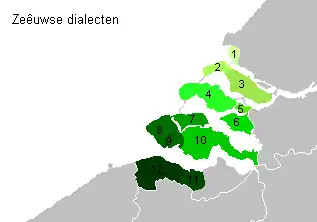 Zeeuws-Vlaams is een verzamelnaam voor de dialecten die gesproken worden in Zeeuws-Vlaanderen. In Zeeuws-Vlaanderen worden in grote lijnen drie dialecten onderscheiden. In het gebied westelijk van de Braakman (globaal de gemeente Sluis en een gebied iets ten oosten daarvan) wordt overwegend West-Zeeuws-Vlaams gesproken dat nauw verwant is met het West-Vlaams dat in West-Vlaanderen in België wordt gesproken. Het West Zeeuws-Vlaams wordt ook wel "Land van Cadzands" genoemd. Op het Eiland van Axel (de plaatsen of vroegere gemeenten Terneuzen en Axel, niet de huidige gemeente Terneuzen die zich ver buiten het eiland van Axel uitstrekt) dat tegenwoordig onderdeel uitmaakt van het vasteland van Zeeuws-Vlaanderen wordt het "Land van Axels" gesproken dat weer wordt onderscheiden in Axels en Terneuzens. Het "Land van Axels" is nauw verwant met de Zeeuwse dialecten aan de andere zijde van de Schelde. Dit komt doordat dit gebied werd bewoond door bevolking afkomstig van Walcheren. Dit verklaart ook waarom het merendeel van de bevolking uit dit gebied protestant is. In Oost- en Midden-Zeeuws-Vlaanderen (langs de Belgische grens) met daarin de gemeente Hulst en de plaats Sas van Gent worden varianten van het Oost-Vlaams gesproken. Het dialect van Hulst vertoont hierbij sterkere kenmerken van het Oost-Vlaams dan het dialect van Sas van Gent. Deze gebieden hebben altijd tegen het vasteland van België aangelegen en zijn ook overwegend katholiek.