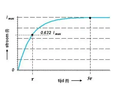 Deze vorm wordt geregeerd door de tijdconstante . Op het tijdstip is de stroom tot gestegen. Op is de eindwaarde praktisch bereikt, waarna de stroomsterkte niet meer verandert.