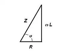 Bij wisselstroom manifesteert zich de zelfinductie als een belemmering voor veranderingen in de stroomsterkte. Daardoor lijkt de weerstand toegenomen te zijn; dit noemt men schijnbare weerstand of impedantie. De totale impedantie, aangeduid met , bestaat uit de component ten gevolge van de zelfinductie en eventueel aanwezige andere componenten, zoals de ohmse weerstand . In bijgaand vectordiagram, ook wel impedantiedriehoek genoemd, staat de impedantie opgebouwd uit zelfinductie en ohmse weerstand: