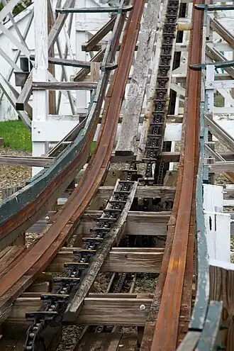 Een zijfrictieachtbaan is de voorloper van de moderne achtbaan. Alle gebouwde zijfrictieachtbanen waren van hout, want de stalen achtbaan was nog niet uitgevonden.