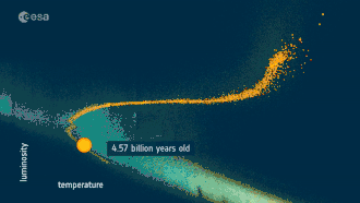 De zon is al ongeveer 4,5 miljard jaar hoofdreeksster en zal dit nog zo'n 5,5 miljard jaar blijven. De ster zit ongeveer op de helft van haar hoofdreeksfase. In deze hoofdreeksfase is de omvang van de ster min of meer stabiel. Ze groeit of krimpt niet met extreme waarden. Aangezien de Zon een deel van haar massa omzet in energie, verliest ze een deel van haar massa. Daardoor wordt de gravitatie kleiner ten opzichte van de stralingsdruk, waardoor de ster zeer langzaam groeit. De baan van planeten, zoals de aarde, zal zichzelf aanpassen door deze massaverandering en groter worden. De centripetale kracht in de baan moet immers gelijk zijn aan de gravitatie die de ster uitoefent.
