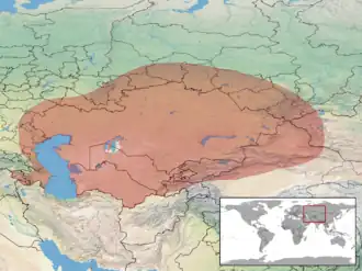 | Verspreidingsgebied van Phrynocephalus helioscopus in het rood. | |||||||||||||||||||