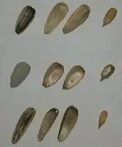 Voor commerciële doeleinden worden zonnebloempitten ingedeeld naar het patroon van hun schil.