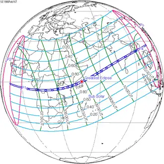 De totale zonsverduistering van 16 februari 1980 trok veel over land en zee en was achtereenvolgens te zien in deze acht landen: Angola, Democratische Republiek Congo, Tanzania, Kenia, India, Bangladesh, Myanmar en China.[1][2]