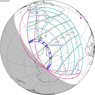 De totale zonsverduistering van 1 oktober 1921 trok veel over zee en was op land alleen te zien op Antarctica.[1][2]