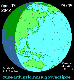De totale zonsverduistering van 20 april 2042 zal veel op zee te zien zijn, maar in het begin zal deze zich voortbewegen over de landen Indonesië, Maleisië, Brunei en Filipijnen.[1][2]