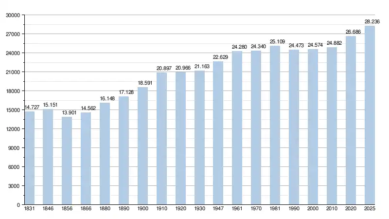 Alle historische gegevens hebben betrekking op de huidige gemeente, inclusief deelgemeenten, zoals ontstaan na de fusie van 1 januari 1977.