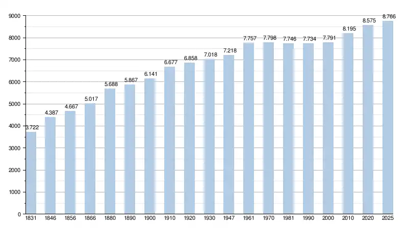Alle historische gegevens hebben betrekking op de huidige gemeente, inclusief deelgemeenten, zoals ontstaan na de fusie van 1 januari 1977.
