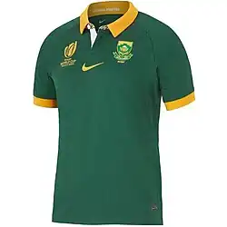 Het Zuid-Afrikaans rugbyteam speelt in groene shirts en kousen met een witte broek. Het shirt heeft traditiegetrouw een gouden kraag. Op de voorkant staat de naam van de sponsor. Het logo van de nationale rugbybond, in de vorm van een springbok, staat ook op het shirt. Dit symbool staat vaak ter discussie in Zuid-Afrika omdat het wordt geassocieerd met het apartheidsregime. In 1995 heeft Nelson Mandela er persoonlijk voor gezorgd dat de springbok gehandhaafd bleef op het shirt. Hij begreep hoe belangrijk dit symbool voor de rugbyliefhebbers in Zuid-Afrika is. Op het WK in 2011 werd de springbok verplaatst naar de mouw van het shirt aangezien de koningsprotea het nationale symbool is geworden en op de borst moet staan.