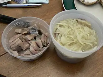 Het gerecht is in de 17e eeuw door Asjkenazische Joden in Nederland geïntroduceerd. Het wordt sinds de middeleeuwen vooral gegeten in Duitsland, Polen, de Friese regio, Scandinavië en Groot-Brittannië.