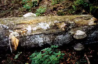 De bekendste voorbeelden van zwakteparasieten zijn te vinden in het rijk van de schimmels. Een groot aantal schimmels parasiteren oude, zieke of gewonde bomen, vaak met het afsterven van de gastheer tot gevolg. Hierna leeft de schimmel verder als saprofyt.[1] Sommige soorten als de pruikzwam (Hericium erinaceus) produceren nog vele jaren hun vruchtlichamen op het dode hout.[2] Andere soorten als de echte tonderzwam (Fomes fomentarius) hebben blijvende paddenstoelen. Nadat de boom is geveld kunnen de sporen niet meer verticaal naar beneden vallen. Er groeit daarom een nieuw hymenium, dat dwars ten opzichte van het oude staat.[3]
