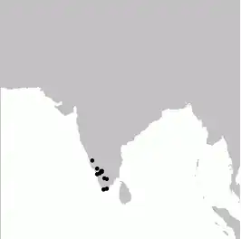 Deze soort is endemisch in zuidwestelijk India in de gebergteketen West-Ghats, alwaar de vogel een bewoner is van bossen, maar ook plantages van onder andere koffie op hellingen boven de 700 m boven zeeniveau. Voorwaarde is de aanwezigheid van een rijke ondergroei op rotsige bodems met veel bladafval. De vogel verblijft voornamelijk in de ondergroei.[3]