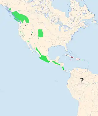Deze soort komt voor ten westen van Noord-Amerika, Midden-Amerika en het Caribisch gebied.