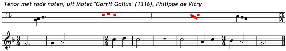 Een citaat uit Motet "Garrit Gallus" (1316) van Philippe de Vitry