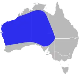 De soort komt endemisch voor in delen van Australië en leeft in de staten New South Wales, Noordelijk Territorium, Queensland, Victoria, West-Australië en Zuid-Australië.[3] De habitat bestaat uit mediterraan-achtige scrublands, hete woestijnen en zandduinen langs de kust.