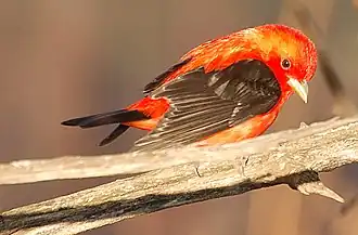 | Zwartvleugeltangare (Piranga olivacea) | |||||||||||||
