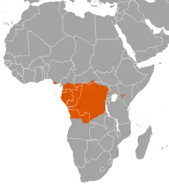 | Verspreidingsgebied van de zwartvoorhoofdduiker | |||||||||||||