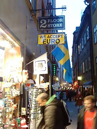 Stockholm is de belangrijkste stad in Zweden qua toerisme (gemeten naar het aantal overnachtingen van buitenlandse toeristen). Enkele winkels accepteren euro's, er is vanuit de gemeenteraad geen motie gekomen om winkeliers op te roepen euro's te accepteren. Ook kunnen Taxi's in Stockholm betaald worden met euro's.[21] In 2009 was er een afgewezen voorstel om de euro in Stockholm te kunnen gebruiken als betaalmiddel.[19]