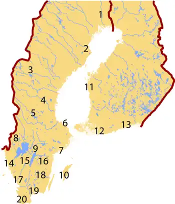 - Götamål — west en noord Götaland, traditioneel met centrum in Västergötland